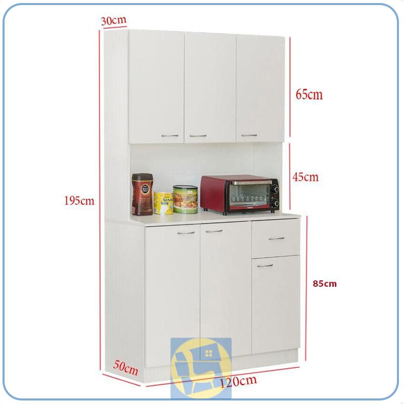 این کابینت در قسمت بالایی خود دارای دو کمد است. یکی از کمدها دارای عرض بیشتر و دو درب است. داخل این کمد یک طبقه تعبیه شده است. این طبقه باعث میشود تا بیشترین استفاده را از فضای داخلی کمد داشته باشید. کمد کناری که دارای عرض کمتر و یک درب است نیز دارای طبقه در داخل خود میباشد. قسمت میانی این استند آشپزخانه دارای فضای خالی است. از این فضا برای قرار دادن وسایل پذیرایی و تزئینی استفاده میشود. بیشترین استفادهای که از این فضا میشود برای قرار دادن قهوه ساز و یا مایکروویو (ماکروفر) است.
