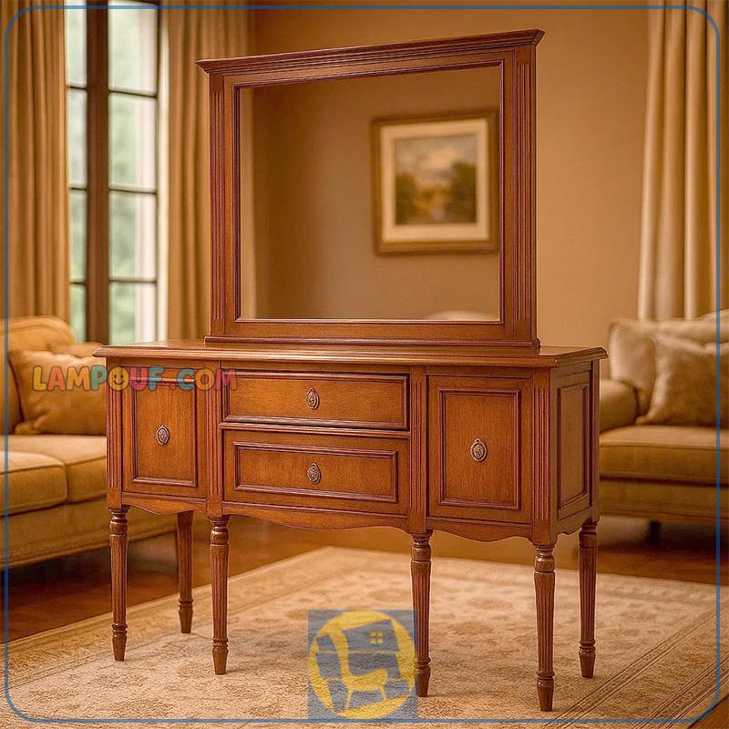 میز آرایش را میتوان به عنوان تکمیل کننده و عامل زیبایی سرویس خواب در نظر گرفت. این میز آرایش به صورت دو تکه طراحی شده است.