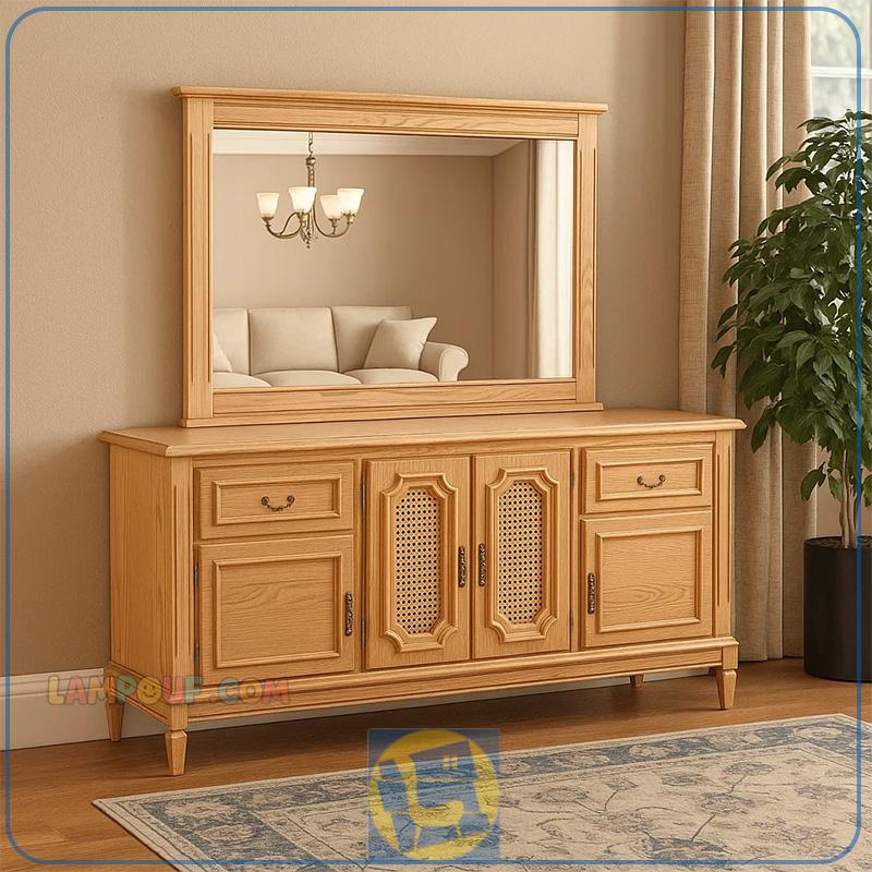 این کنسول دارای آینه میباشد که دارای قاب به صورت چوبی است و در قسمت روی میز قرار میگیرد.