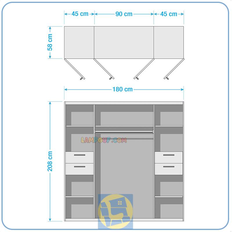 - ابعاد استاندارد: ارتفاع 208 سانتیمتر – عرض 180 سانتیمتر – عمق 58 سانتیمتر