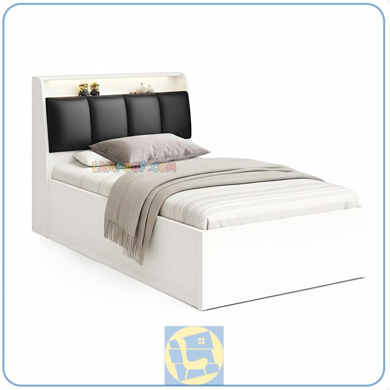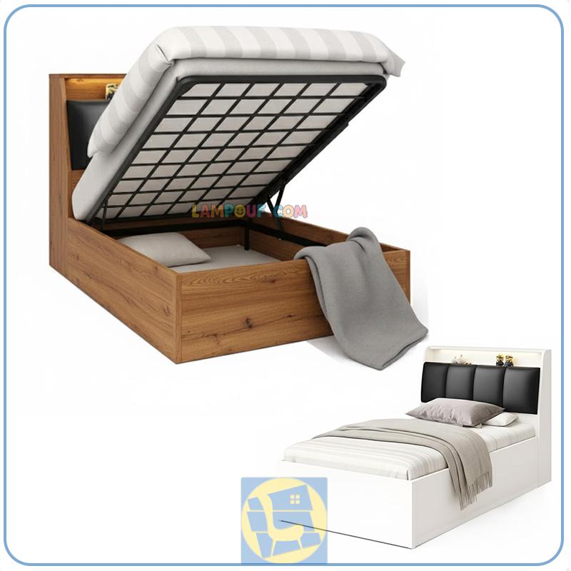 تخت خواب یک نفره جکدار SBJ309 دارای صندوق به صورت جکدار در زیر تشک و فضای ذخیره سازی در قسمت تاج، مناسب برای نوجوان و بزرگسال.