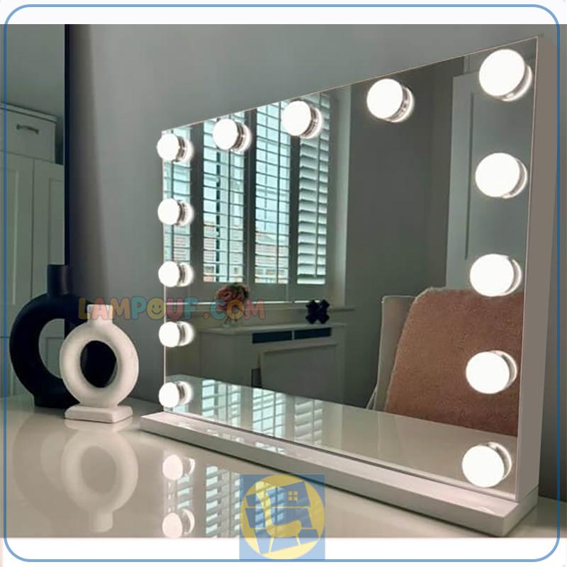 این آینه بهصورت لامپدار (هالیوودی) طراحی شده است تا روشنایی کاملی برای آرایش، اصلاح یا گریم فراهم کند.