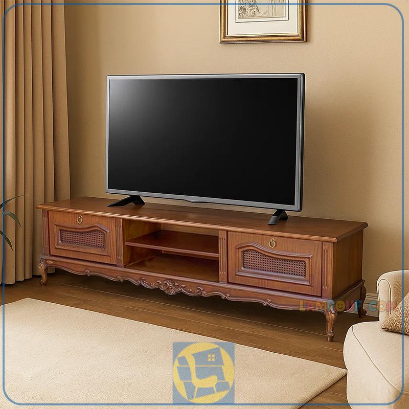 میز تلویزیون TTA806 به صورت منبت کاری شده دارای کشو و قفسه که به عنوان کنسول و استند ال سی دی و ال ای دی در تی وی روم و پذیرایی قرار میگیرد.