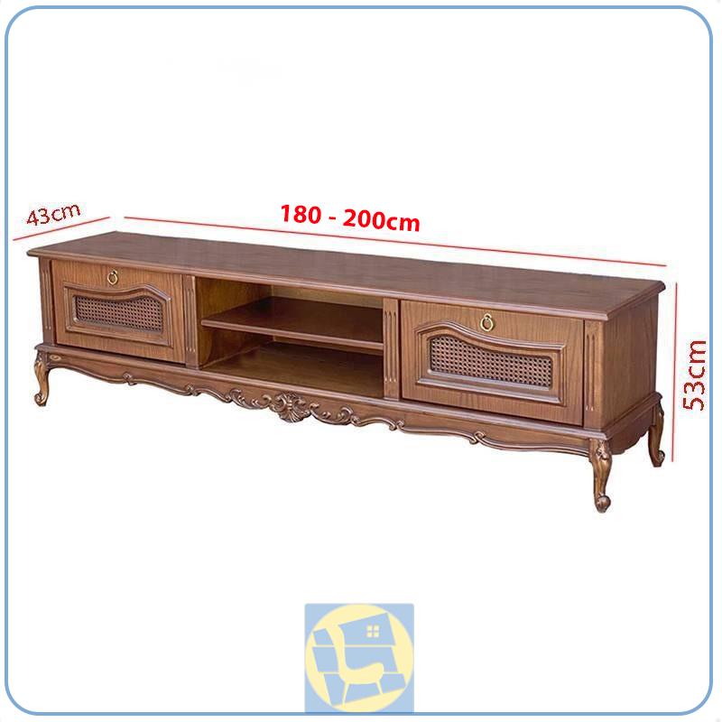 این میز تلویزیون دارای ابعادی با عرض 180 و 200 سانتیمتر و عمق 45 سانتیمتر و ارتفاع 54 سانتیمتر است.