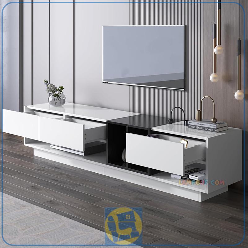 این میز تلویزیون مدرن با طراحی مینیمال خود، قابلیت هماهنگی با انواع دکوراسیونها را دارد: